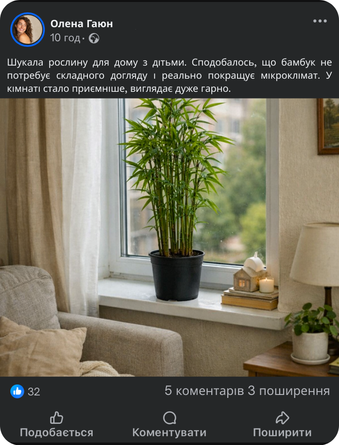 Бамбук не лише прикрашає інтер’єр, а й працює щодня на користь вашого дому — очищує повітря, підтримує вологість і створює відчуття природної свіжості без додаткових приладів.